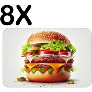 BWK Stevige Placemat - Heerlijke Hamburger op Lichte Achtergrond - Set van 8 Placemats - 45x30 cm - 1 mm dik Polystyreen - Afneembaar
