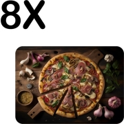 BWK Luxe Placemat - Heerlijke Traditionele Pizza met Knoflook en Ui - Set van 8 Placemats - 40x30 cm - 2 mm dik Vinyl - Anti Slip - Afneembaar