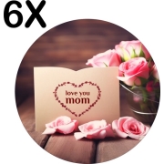 BWK Flexibele Ronde Placemat - I Love Mom - Moederdag - Rozen - Set van 6 Placemats - 40x40 cm - PVC Doek - Afneembaar