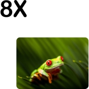 BWK Luxe Placemat - Groene Exotische Kikker - Set van 8 Placemats - 35x25 cm - 2 mm dik Vinyl - Anti Slip - Afneembaar