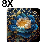 BWK Flexibele Placemat - Blauw met Gouden Bloem - Kunstig - Set van 8 Placemats - 40x40 cm - PVC Doek - Afneembaar