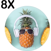 BWK Flexibele Ronde Placemat - Hippe Ananassen met Zonnebril en Koptelefoon - Set van 8 Placemats - 50x50 cm - PVC Doek - Afneembaar