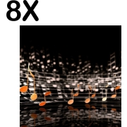 BWK Textiele Placemat - Vrolijke Muzieknoten op Zwarte Achtergrond - Set van 8 Placemats - 50x50 cm - Polyester Stof - Afneembaar
