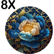 BWK Stevige Ronde Placemat - Blauw met Gouden Bloem - Kunstig - Set van 8 Placemats - 40x40 cm - 1 mm dik Polystyreen - Afneembaar