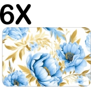 BWK Flexibele Placemat - Patroon van Blauwe Bloemen met Gouden Bladeren - Set van 6 Placemats - 45x30 cm - PVC Doek - Afneembaar