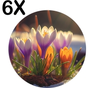 BWK Luxe Ronde Placemat - De Eerste Krokus Bloemen van het Seizoen - Set van 6 Placemats - 50x50 cm - 2 mm dik Vinyl - Anti Slip - Afneembaar