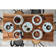 Ronde placemats - Onderlegger - Placemats rond - Marmer print - Turquoise - Lijn - 8 stuks