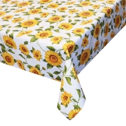 Bellatio Design Tafelzeil Zonnebloemen Print - Wit - 140 x 180 cm - PVC - Tuintafelkleed -