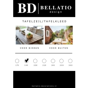 Tafeldecoratie zeil met zwart met witte polkadot stippen print. Afmeting: 140 x 250 cm. Het tafelzeil valt het mooiste rondom een tafel van 100 x 220 cm, zorg bij een grotere tafel voor een…