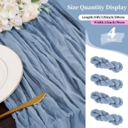 4 stuks stoffige blauwe kaasdoek, tafelloper, halfdoorzichtig, tafelloper, gaas, tafellaken, 300 cm, rustieke decoraties voor keuken, bruiloft, vakantie, feestartikelen (stoffig blauw, 300 cm)