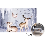 Tafelkleed - Tafellaken - 220x150 cm - Winter - Hert - Vogel - Sneeuw - Binnen en Buiten
