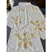 Wanneer kunst samengaat met elegantie, wordt uitmuntendheid bereikt.2 tafelloper-1groot(1.44lang/breed49) 1 klein (1.17lang/breed48)2 klein bijzettafelkleed (50/50)Ottoman…