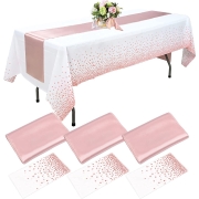 Geweldige prijs-kwaliteitsverhouding: het pakket bevat 3 stuks roségouden confetti-punten, kunststof tafelkleden rechthoekig 54 x 30 cm en 3 stuks polyester satijnen tafellopers 30 x 30 cm.…