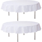 2x Witte ronde tafelkleden/tafellakens 240 cm stof. Ronde tafeldecoratie kleden van witte stof. De tafelkleden zijn geschikt voor gebruik binnenshuis (binnen/indoor) en voor gebruik buitenshuis (…