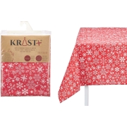 Krist+ kerst tafellaken/tafelkleed - 140 x 240 cm - rood - sneeuwvlokken - rechthoekig -