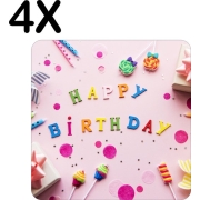 BWK Luxe Placemat - Vrolijke Roze Happy Birthday - Set van 4 Placemats - 50x50 cm - 2 mm dik Vinyl - Anti Slip - Afneembaar