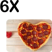 BWK Luxe Placemat - Love Pizza - Hartjes Pizza - Set van 6 Placemats - 40x30 cm - 2 mm dik Vinyl - Anti Slip - Afneembaar
