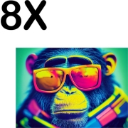 BWK Textiele Placemat - Aap met Zonnebril in Neon Kleuren - Set van 8 Placemats - 40x30 cm - Polyester Stof - Afneembaar
