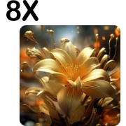 BWK Flexibele Placemat - Goud - Bloem - in Bloei - Artistiek - Set van 8 Placemats - 50x50 cm - PVC Doek - Afneembaar