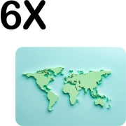 BWK Flexibele Placemat - Groene Wereldkaart - Set van 6 Placemats - 40x30 cm - PVC Doek - Afneembaar