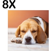 BWK Textiele Placemat - Liggende Beagle Puppy - Set van 8 Placemats - 50x50 cm - Polyester Stof - Afneembaar
