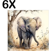 BWK Textiele Placemat - Getekende Schattige Baby Olifant naast een Boom - Set van 6 Placemats - 50x50 cm - Polyester Stof - Afneembaar