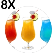 BWK Stevige Ronde Placemat - Gekleurde Cocktails - Set van 8 Placemats - 40x40 cm - 1 mm dik Polystyreen - Afneembaar