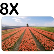 BWK Flexibele Placemat - Tulpenveld met Molen in de Verte - Set van 8 Placemats - 45x30 cm - PVC Doek - Afneembaar