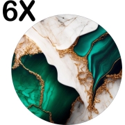 BWK Stevige Ronde Placemat - Marmer Achtergrond met Groen en Wit - Set van 6 Placemats - 40x40 cm - 1 mm dik Polystyreen - Afneembaar
