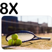 BWK Luxe Placemat - Tennisballen Onder Tennis Racket - Set van 8 Placemats - 45x30 cm - 2 mm dik Vinyl - Anti Slip - Afneembaar