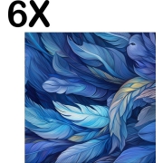 BWK Textiele Placemat - Getekende Blauwe Veren - Set van 6 Placemats - 50x50 cm - Polyester Stof - Afneembaar