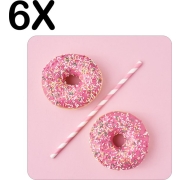 BWK Stevige Placemat - Roze Donuts met Rietje - Set van 6 Placemats - 40x40 cm - 1 mm dik Polystyreen - Afneembaar