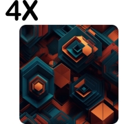 BWK Flexibele Placemat - Artistiek Blauw met Oranje Patroon - Set van 4 Placemats - 50x50 cm - PVC Doek - Afneembaar