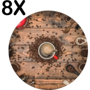 BWK Flexibele Ronde Placemat - Koffie molens en Schepjes - Set van 8 Placemats - 50x50 cm - PVC Doek - Afneembaar