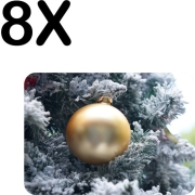 BWK Flexibele Placemat - Gouden Kerstbal in besneeuwde Boom - Set van 8 Placemats - 40x30 cm - PVC Doek - Afneembaar