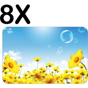 BWK Stevige Placemat - Gele Bloemen met Blauwe Lucht en Bellen - Set van 8 Placemats - 45x30 cm - 1 mm dik Polystyreen - Afneembaar