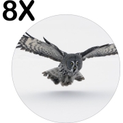 BWK Luxe Ronde Placemat - Grijze Uil Vliegend boven de Sneeuw - Set van 8 Placemats - 50x50 cm - 2 mm dik Vinyl - Anti Slip - Afneembaar