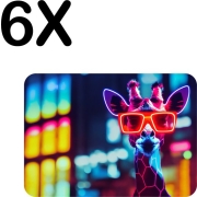 BWK Luxe Placemat - Giraf met Zonnebril in Neon Kleuren - Set van 6 Placemats - 40x30 cm - 2 mm dik Vinyl - Anti Slip - Afneembaar