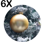 BWK Stevige Ronde Placemat - Gouden Kerstbal in besneeuwde Boom - Set van 6 Placemats - 50x50 cm - 1 mm dik Polystyreen - Afneembaar