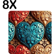 BWK Flexibele Placemat - Gekleurde Harten - Set van 8 Placemats - 40x40 cm - PVC Doek - Afneembaar