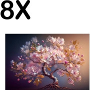 BWK Textiele Placemat - Kunstige Kersen Bloesem - Set van 8 Placemats - 45x30 cm - Polyester Stof - Afneembaar