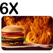 BWK Stevige Placemat - Vlammende Hamburger - Set van 6 Placemats - 45x30 cm - 1 mm dik Polystyreen - Afneembaar