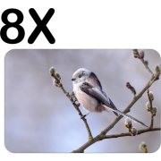 BWK Luxe Placemat - Wit met Zwart Vogeltje in de Boom - Set van 8 Placemats - 45x30 cm - 2 mm dik Vinyl - Anti Slip - Afneembaar