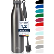 Roestvrijstalen drinkfles, 350 ml, 500 ml, 750 ml, 1 liter, 1.5 l thermosfles, schuine waterfles, lekvrije thermosfles, dubbelwandig, geschikt voor koolzuurhoudende dranken + cleaning brush (grijs, 1,5 l)