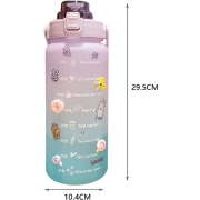 Drinkfles, 2 liter, met rietje, motiverende waterfles met tijdmarkeringen en Kawaii-stickers, schattige waterfles, lekvrije sportfles voor dames, fitness, camping, sport, paars