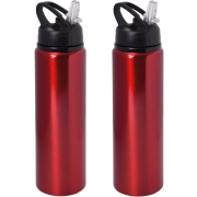 2x kunststof waterfles/drinkfles/sportfles/bidon Sporty in de kleur metallic rood. Met handvat en uitklapbare drinktuit. Afneembaar rietje in de deksel. Afmeting: ca. D7.5 x H23.5 cm. Inhoud: ca.…