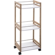Doucherekje/badkamerrekje trolley - bamboe/wit - 3 lagen - 41 x 20 x 80 cm -