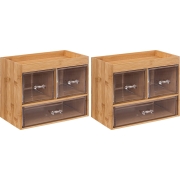 2x stuks sieraden/make-up organizer - 2 lades - 19 x 12 cm - rechthoek - bamboe/kunststof - opbergen -