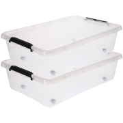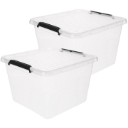 5Five opberg kist met deksel - 2x - Clip Box - 35 liter - 76 x 39 x 16 cm - kunststof - transparant -