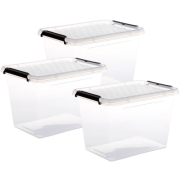 5Five opberg kist met deksel - 3x - Clip Box - 29 liter - 39 x 39 x 26 cm - kunststof - transparant -